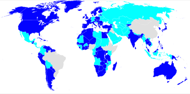 Nella foto in alto sono mostrati (in blu e in celeste) i paesi che riconoscono la patente internazionale di guida come licenza valida per condurre un veicolo a motore. In grigio, invece, sono evidenziati i paesi che non accettano tale licenza. Come è chiaro, gli Stati Uniti d’America accettano la patente internazionale di guida e non ne mettono in dubbio la validità.